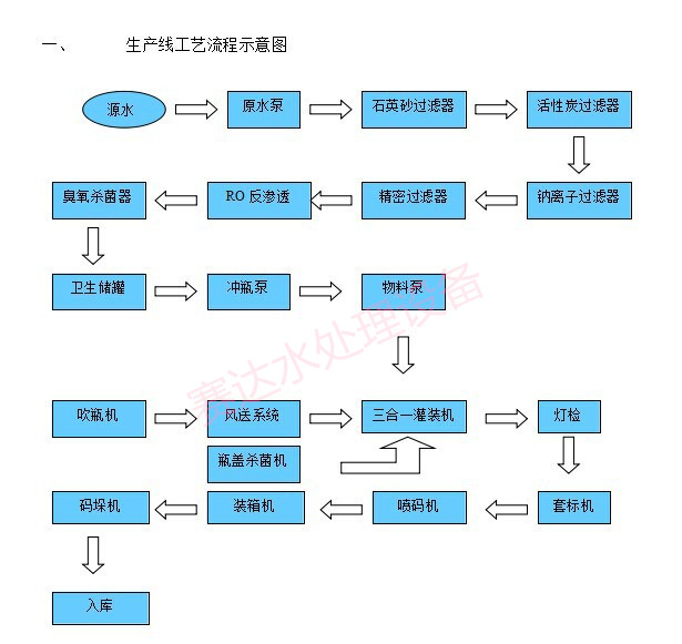 6000瓶/小時瓶裝水灌裝設備工藝流程: